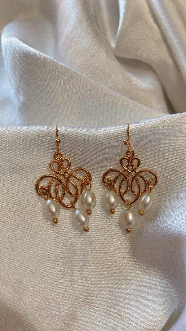 Aros con una base metálica (plateado y dorado) con perlas fantasía redondas, en forma de gota