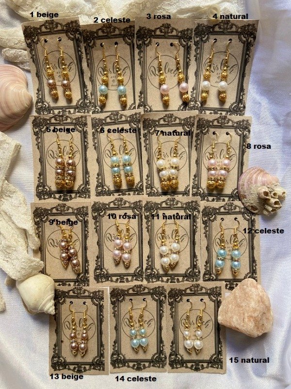 Colores de perlas disponibles: Natural, celeste, beige, rosa y gota rosa, natural y blanca.
